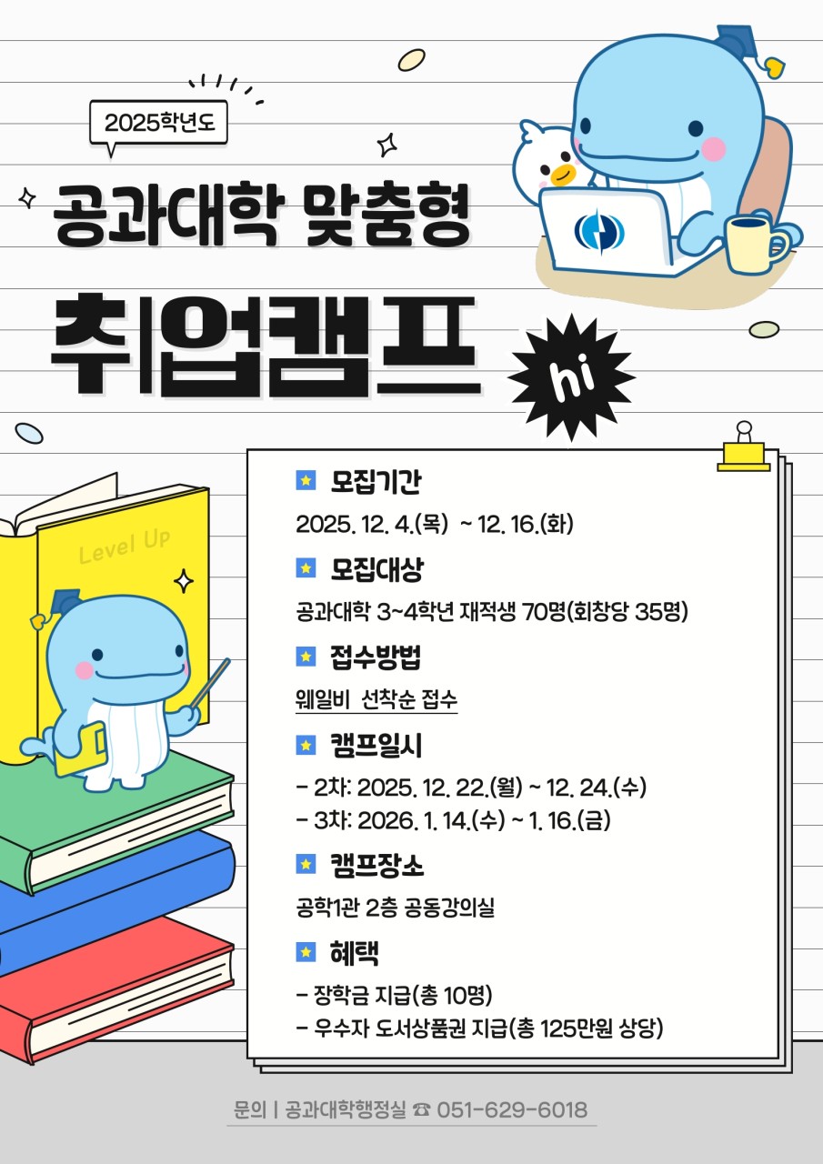 - 내용 : 공학계열 산업(기업)직무 이해 / 취업준비도에 따른 수준별 자소서 컨설팅 / 면접 교육 및 면접 체험 실시