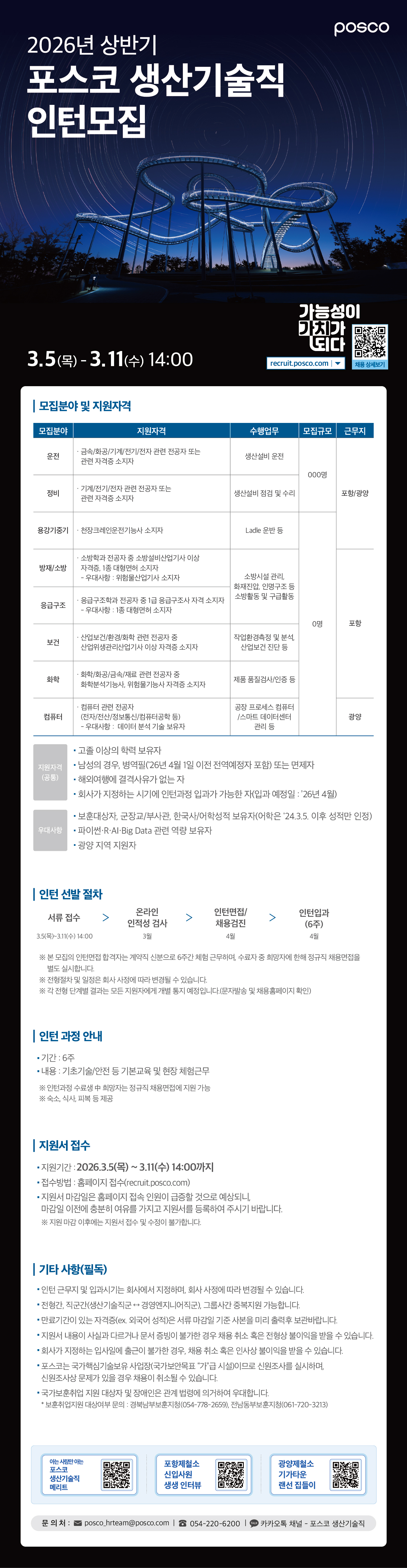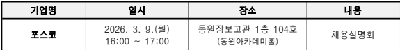 포스코 채용설명(상담)회 개최(3/9 16시)